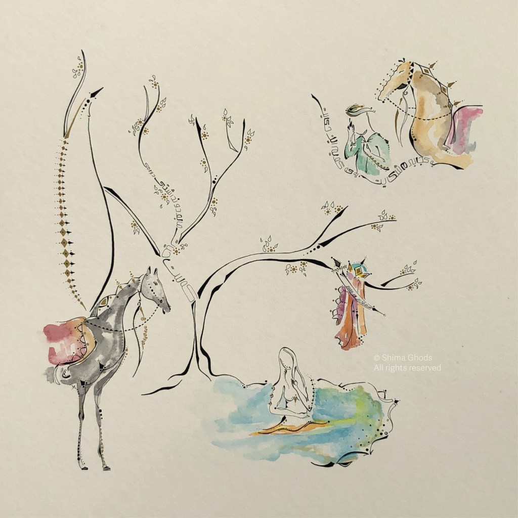This collection is inspired by the emotional journey of love in Persian culture. The artworks combine elements of traditional miniature painting with poetry, telling stories of connection, longing, and inner emotion.